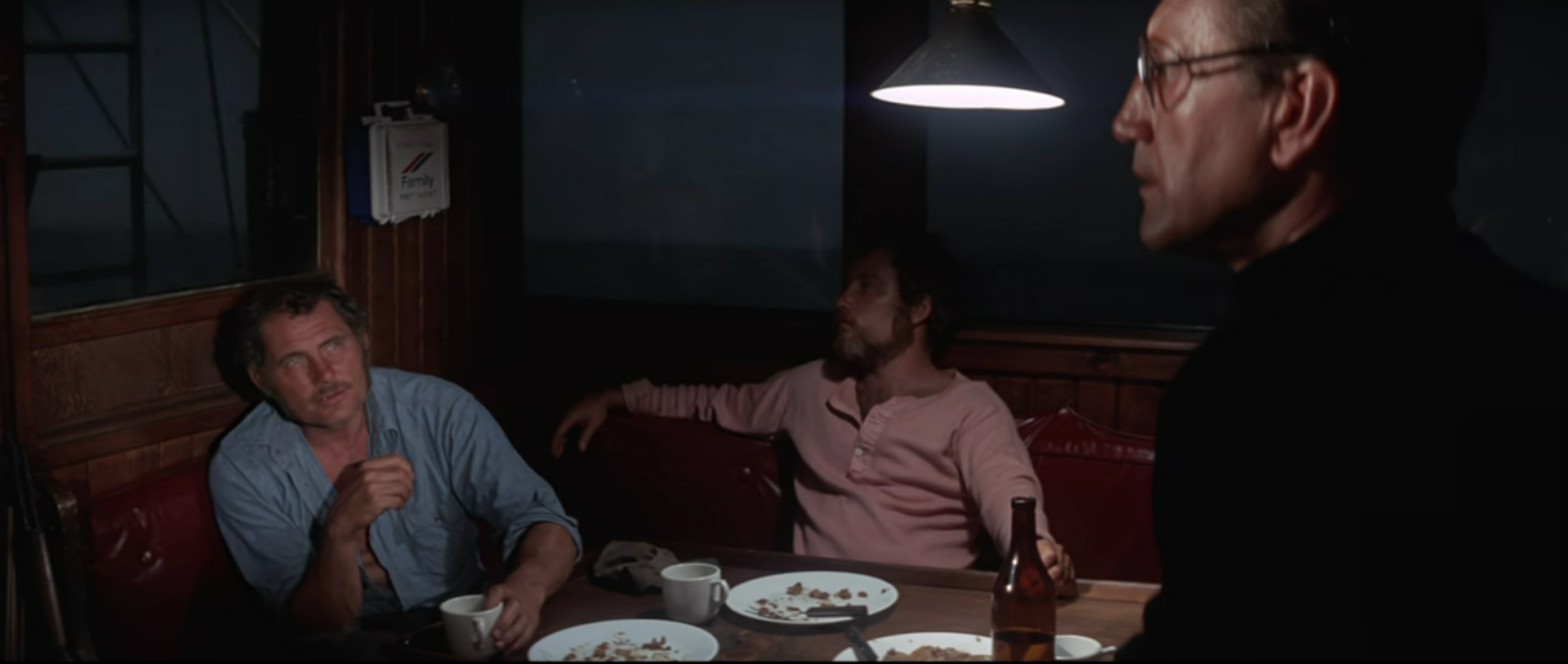 Næste gang vi møder ham, sidder Brody fortvivlet ved middagsbordet—hans laveste punkt i filmen. Halvt fortabt leger han med sin yngste søn - et kort men sødt indblik i hvad der var et roligt familieliv - indtil Hooper dukker op, langt mere fortrøstningsfuld og med blod på tanden. De åbner et par flasker vin og falder i snak, men Hooper er der med en bagtanke, og snart går de to (let berusede) mænd på jagt efter flere beviser for, at hajen der blev dræbt, ikke er dræberhajen.