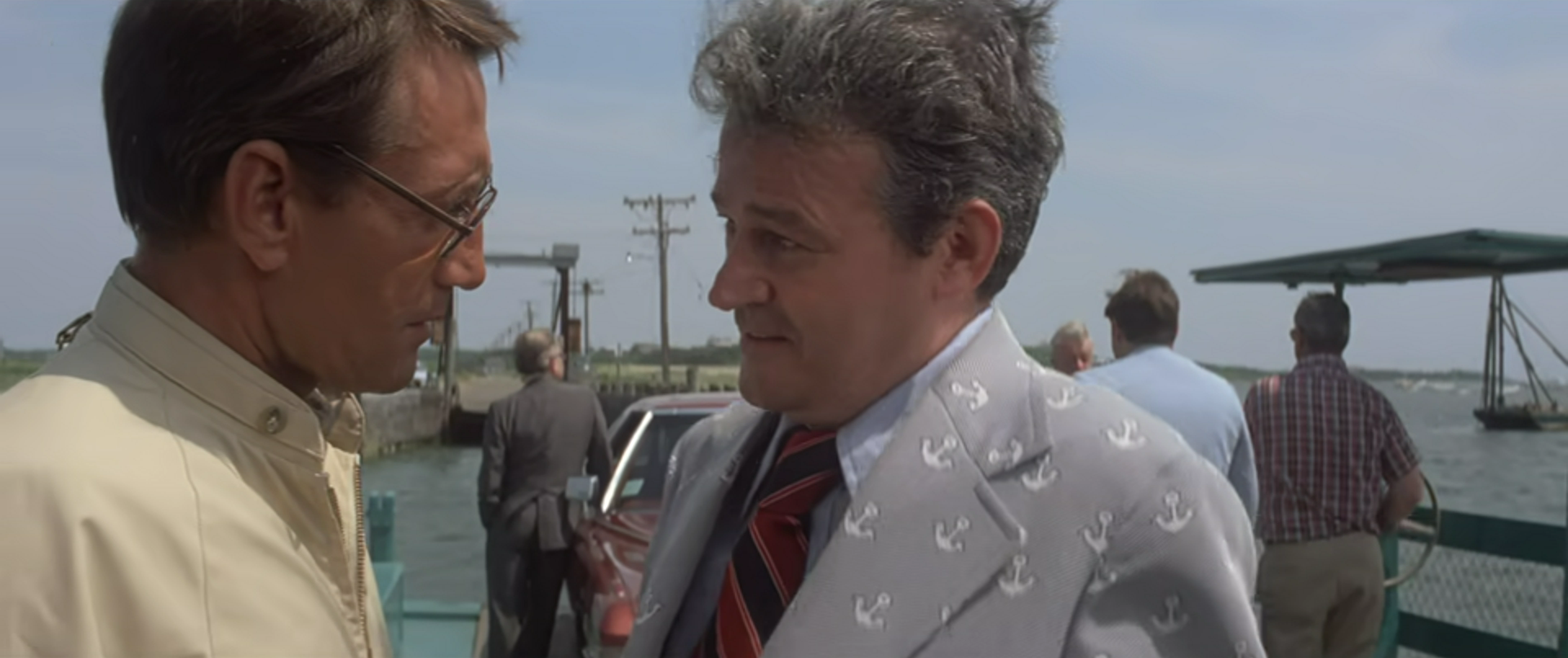 Martin Brody - den lokale politimand på Amity - er vores de facto hovedperson. En udefrakommende der er bange for havet, men som alligevel har fundet sit nye hjem på en stille ø, langt fra New Yorks travle, barske virkelighed (“It’s only an island if you look at it from the water,” som han siger). Amity bliver gennem Brody et idealiseret USA: Fredfyldt, politisk sedentært og afskåret fra resten af landets foranderlige virkelighed. Det er en popcorn-film i klassisk forstand, i en tid, hvor film tenderede mere mod kritik af status quo og social forandring. En tid i amerikansk historie domineret af krigen i Vietnam og Watergate-skandalen.